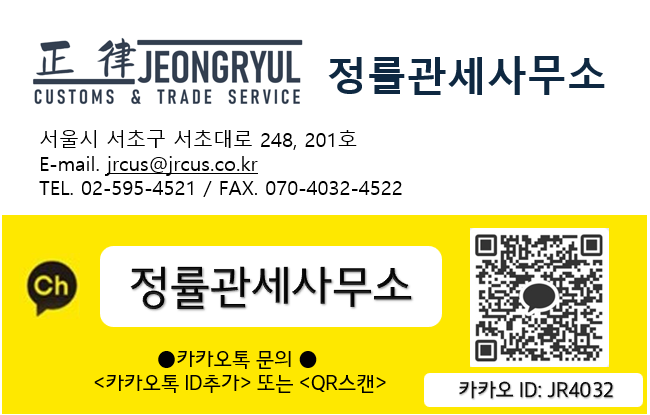 📞 Tel: 02-595-4521© 2025 정률관세사무소 | JungRyul Customs Office. All Rights Reserved.